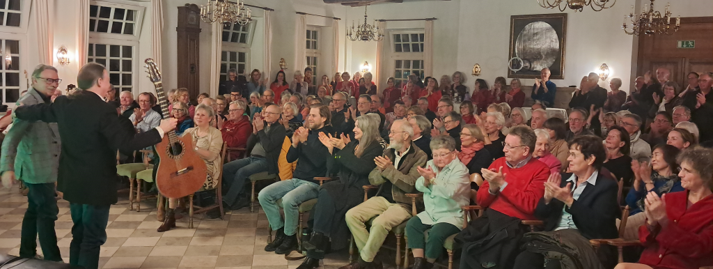 Das Höne-Duo wurde mit Spannung erwartet. Mit ihren energiegeladenen Gitarrenläufen fesselten die Brüder Michael und Thomas Hoene das Publikum, das gebannt und ehrfürchtig den schnellen Fingern folgte, die sich scheinbar mühelos über die Saiten bewegten. Es war offensichtlich, dass die Brüder eine tiefgreifende Leidenschaft für ihre Musik hegen, die in jedem einzelnen Akkord spürbar war. „Ohne diese Hingabe wäre es nicht möglich“, betonten die Musiker in einem gemeinsamen Moment der Reflexion und stimmten darin überein, dass ihre Verbindung zur Musik der Schlüssel zu ihrer beeindruckenden Darbietung war.